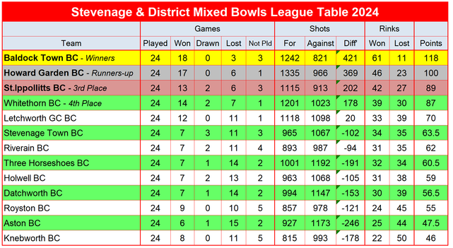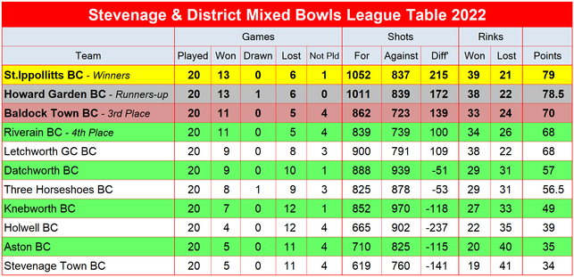 he club who has had the greatest number of winning rinks will be the winner. Should there still be a draw it will be decided on shots.