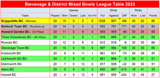 the club who has had the greatest number of winning rinks will be the winner. Should there still be a draw it will be decided on shots.